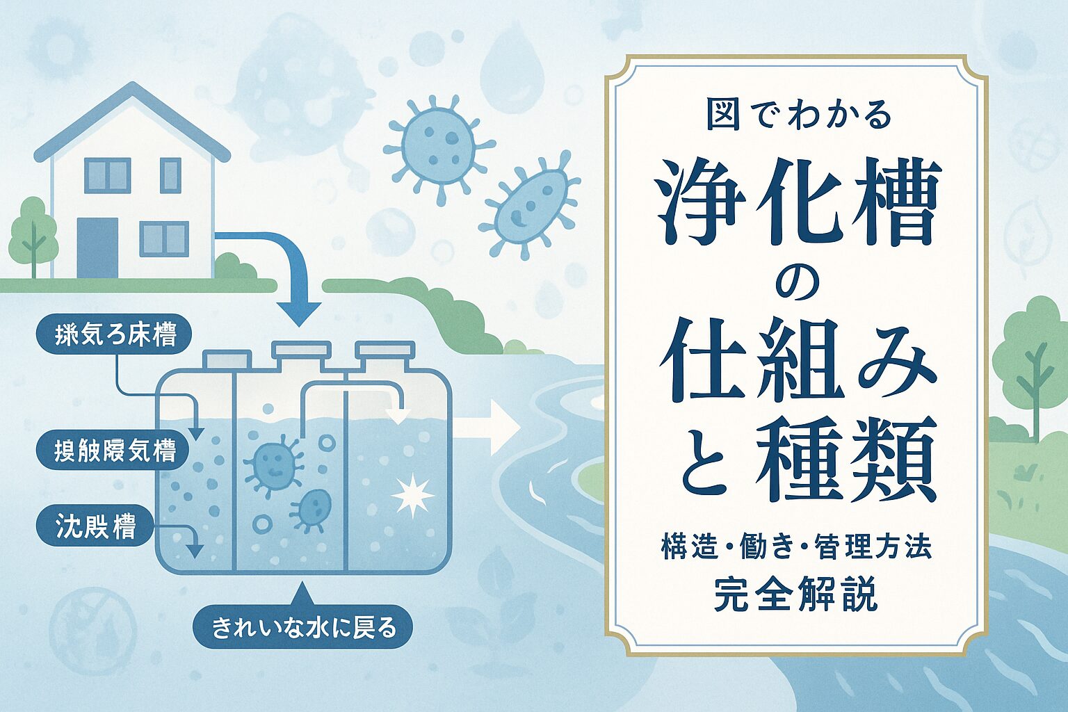 初めて浄化槽を扱う方でも、この記事を読むだけで「全体像」がつかめるよう構成しています。